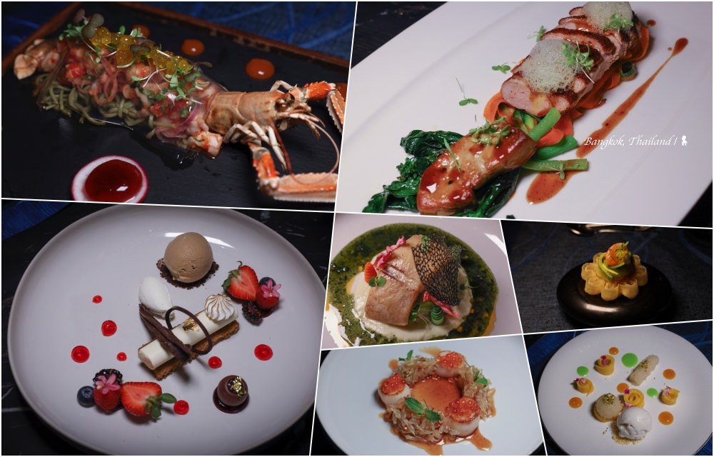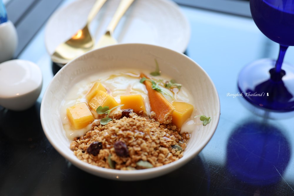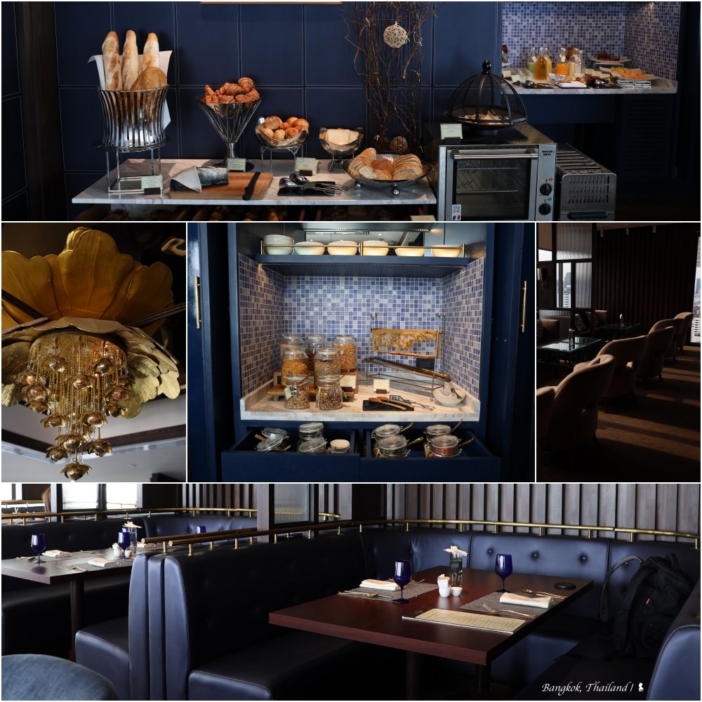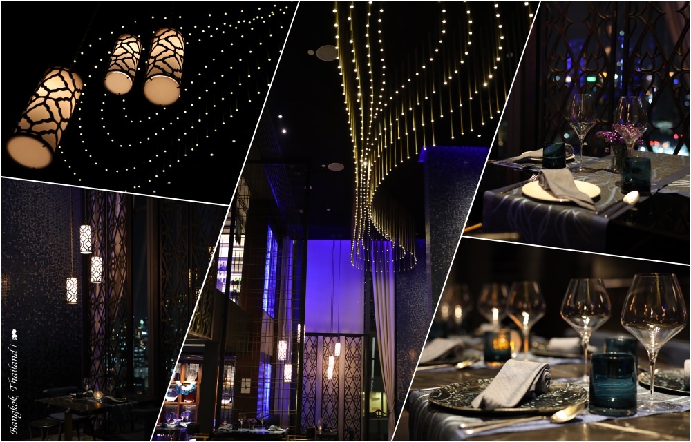 酒店的餐廳部分,若想有一頓坐擁城市夜景的高空晚餐,不妨選擇位於 27 樓的 Nimitr 餐廳,入夜後,餐廳選用的孔雀藍又增添神秘與深邃,從吊燈到餐具與桌上擺飾,都相當具風格與品味。餐廳提供的是亞洲跨界料理,來自印尼的主廚,帶領整個團隊推出融合泰、日、中、韓、越南等料理,精美的擺盤下能發現暗藏的驚喜。