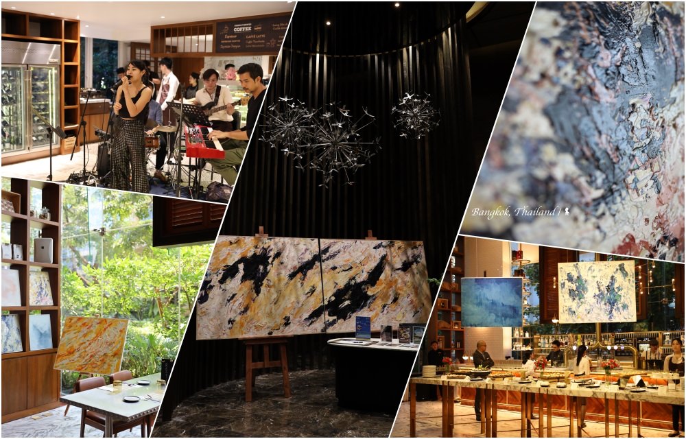 此外,酒店推廣當地藝術也相當用心,常讓該餐廳身兼藝廊,像入住當晚適逢在此舉行「Pastiche」畫展(2019.4.4-5.19)的開幕酒會,由泰國與日本兩位女畫家連袂共展,以色塊與紋理為主的畫作,也讓餐廳呈現不同氛圍。若有機會來訪,不妨留意飯店公布的展覽資訊。