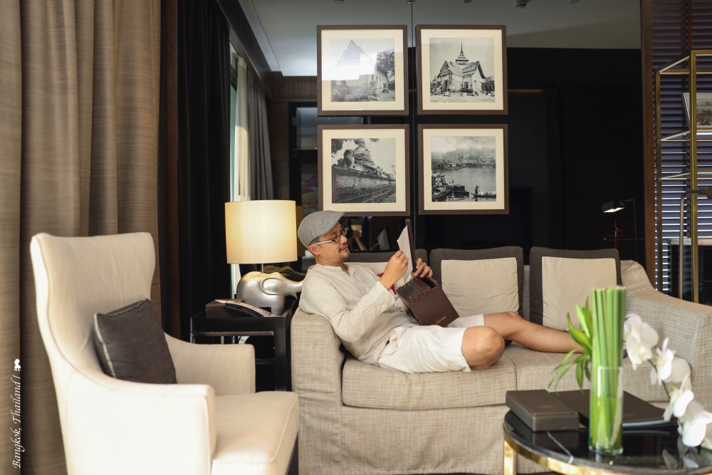套房有 34 間,分為四種級別,一律有管家服務。這次我入住的是 Ayutthaya Suites,位於 30 樓的邊間,房間相當寬敞,打開門,先看到獨立一室的 mini bar,提供膠囊咖啡機與不錯的茶葉,接著是小圓餐桌區與客廳,進入臥室前會被面積很大的陽台吸引,有可躺在上面的沙發以及屬於 137 Pillars 標誌的搖椅,在這向下望視野很好,讓我驚喜發現,原來曼谷的四月天,竟也小有春城無處不飛花的浪漫。