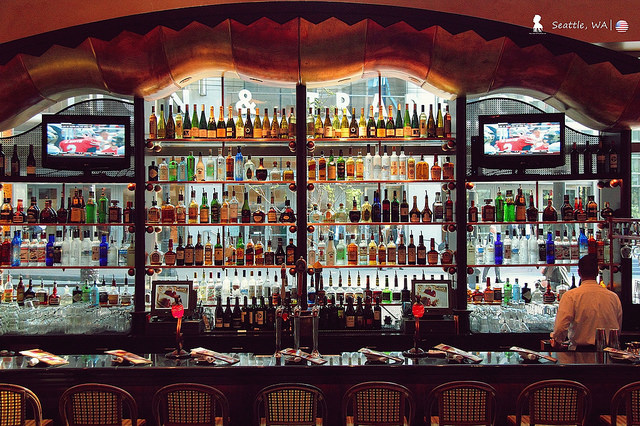 西雅圖市區的連鎖餐廳 Cheese Factory裡頭的酒吧窗景