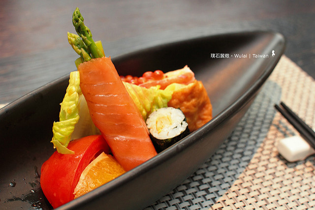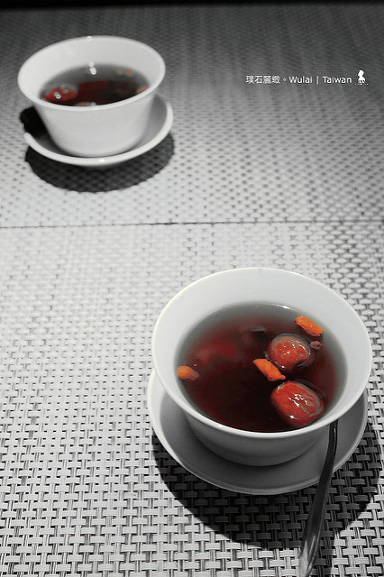 意外切成觀光客模式的我帶著一份閒適來到璞石麗緻,並非首次造訪,但多年不見再來,停完車從B1搭乘電梯升出地面,仍讓外頭一池清水倒影映照的氣爽起來。用餐的地點是在「璞食軒」,這次吃的是一客NT$ 1,200(另加 10%)的晚間套餐,共有六項料理從清爽的開胃前菜一直到最後的桂花紅棗甜湯的滿足收尾,一頓吃下來份量安排的剛剛好、不會太撐,我想這菜單應該是主廚針對剛泡完湯的客人所設計,雖這次沒有泡湯,但我能想像若浸泡完氤氳綠意後帶著紅潤稍作休息,接著享受一道道賞心悅目、食如景的料理,這絕對會是泡湯行程的完美結尾。