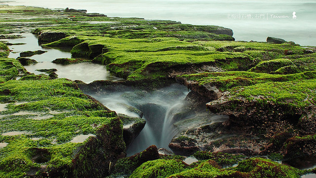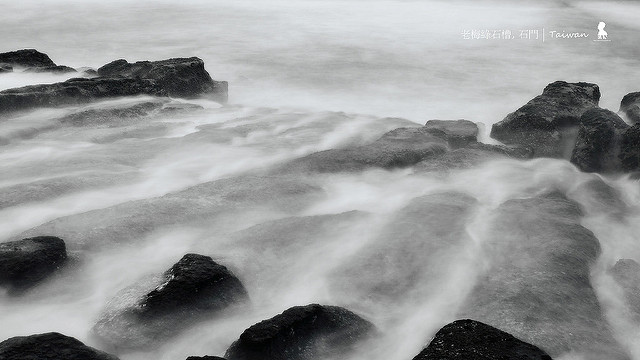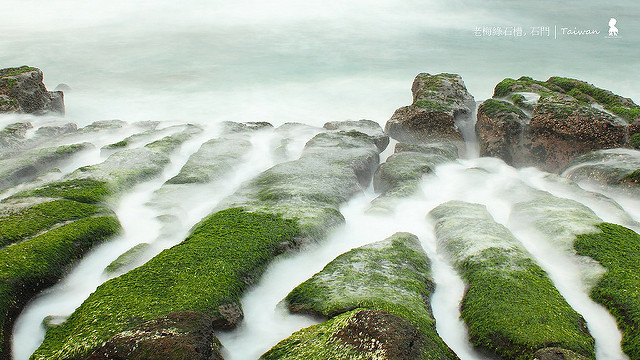而一天內的最佳拍攝時間據說清晨與黃昏的「神奇時刻」是最棒的,我是黃昏去但當天雲層太厚沒有晚霞所以拍攝效果不如預期,但在這兩個時間點拍攝有個好處是因為光線較沒那麼強所以可用長時間曝光來拍出綠石槽猶如噴上乾冰的仙境感!當然前提是一定得準備腳架。還有是我之前沒意識到但還好沒遇到的漲潮問題,出發前可先上氣象局網站查詢每日石門地區的潮汐時間,才不致因海水漲潮淹沒石槽而無緣得見。