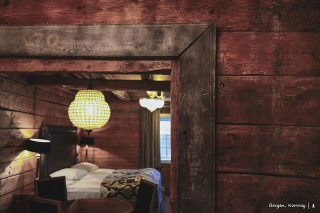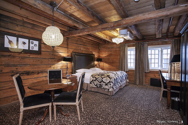 卑爾根是挪威第二大城、建立至今已近千年,其歷史上的重要性在於13到18世紀以德國商人為主的漢薩同盟看中挪威出產的鱈魚乾於是在此設立貿易據點,卑爾根最著名的成排相連木房子是當時的倉庫,這一區被稱為布里根(Bryggen)。如今看到的木頭房舍雖是大火後的重建,但迄今也已超過三百年,1976年被聯合國列為世界文化遺產。在卑爾根停留的這晚乾脆也就直接住進這區裡同樣被列為世界文化遺產的飯店:漢薩飯店(Det Hanseatiske Hotel)。