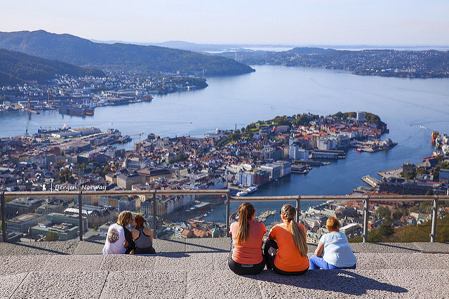 造訪卑爾根,除了鱗次櫛比的漢薩同盟連排木房是不能錯過的歷史景點,另一推薦的是前述同樣在市中心的佛洛伊恩山觀景台,買張票坐上階梯式車箱座位的纜車,沿著最大陡坡 26度緩緩爬上只要 5、6 分鐘就可攻頂高 320公尺的佛洛伊恩山,在寬闊的瞭望台上可俯瞰丘陵圍繞峽灣的北歐風光。建議上去搭纜車,下山就順著靜謐的林間小徑散步回到市中心,將會發現不因為村上春樹的文字也不因為伍佰的音符,挪威的森林,就是那樣翠綠充滿著生命力的美麗!此外,若有時間,晚上建議可再次搭纜車上山欣賞萬家燈火點亮的這座峽灣城市,閃耀著黃鑽光芒的夜景非常潔淨透亮,不輸世界三大夜景。