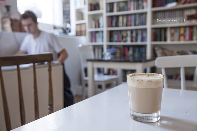 要離開卑爾根的這天散步前來「書店咖啡」(Krok og Krinkel Bokcafe)跟當地人一塊喝咖啡,口味如何早就不復記憶,但坐在裡頭啜飲一杯閒情的那份自在,是想來都會微笑的旅遊心情。