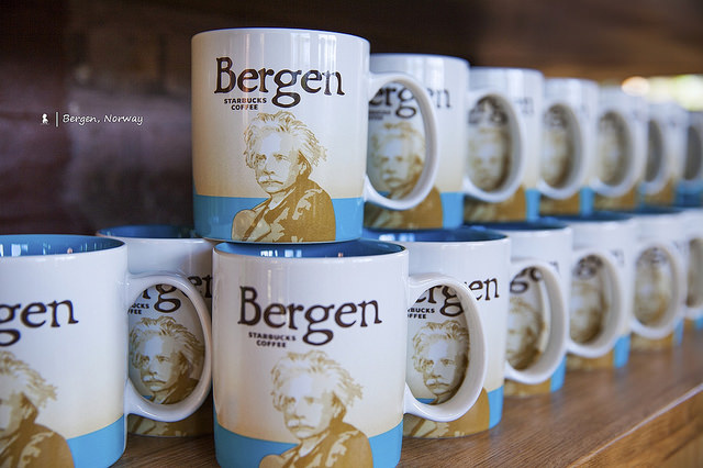 卑爾根星巴克販售的城市杯,配色真是優雅好看,杯子上的肖像是挪威作曲家愛德華‧葛利格(Edvard Grieg )