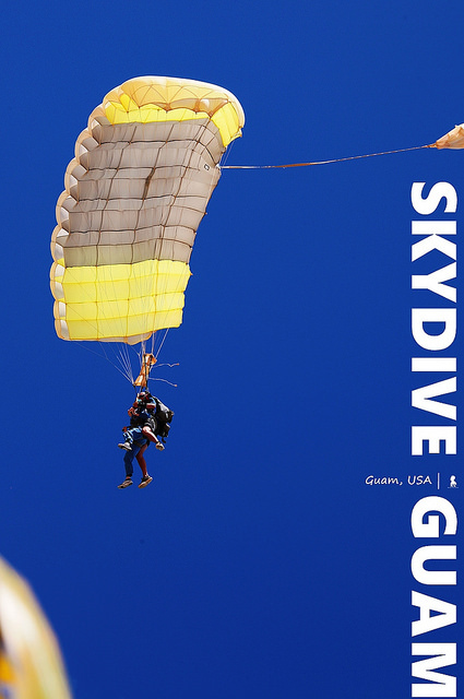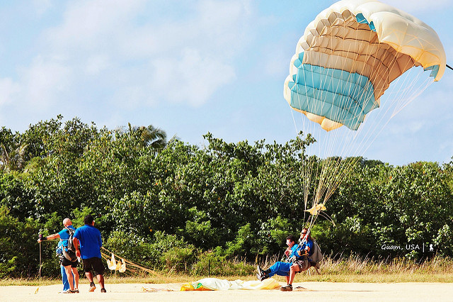 高空跳傘運動世界很多地方都有,距台灣3.5小時航程的關島是最靠近同時也讓人放心的體驗地點,在這可上午從高空14000英呎跳下,下午接著潛入水面擁抱幾十米深藍,若傍晚再去沙灘慢跑欣賞夕陽那可就海陸空極限關島一條龍了!
