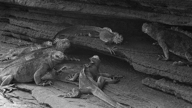 長途跋涉加上可能過程中還會暈船,這麼辛苦為的就是要探訪自然。在Santa Cruz Island,我近距離觀察到推估可活150-200歲、狀如小帳篷的大陸龜在面前緩緩爬行;才登上Santiago島,就發現浪花拍打的礁岩旁聚集了一群海鬣蜥(Iguana)正在開趴;腳掌艷紅的紅腳鰹鳥,還有像裝顆被吹飽紅色氣球在脖子上的可愛軍艦鳥,那些很卡通的鳥類們是達爾文灣的隨處可見。