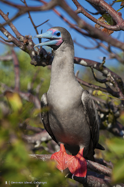 加拉巴哥群島的珍貴在於還保留著自然原始樣貌,對人類的恐懼尚未被儲存在動物的記憶基因中,嚮導說這些島上的鳥,把人類當成不會攻擊他們的其他哺乳動物一樣,因此同樣的近距離,其他地方的鳥類老早本能性的閃避,但這裡的鳥卻是懶得睭你。