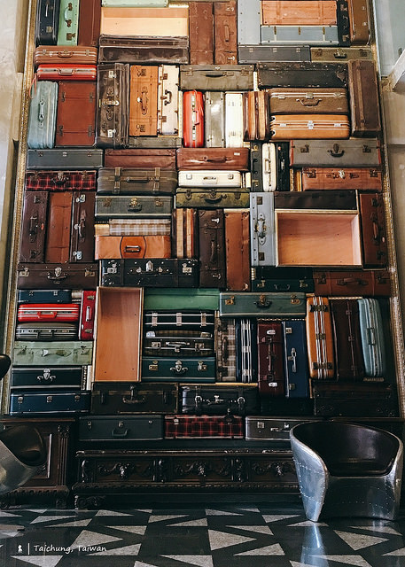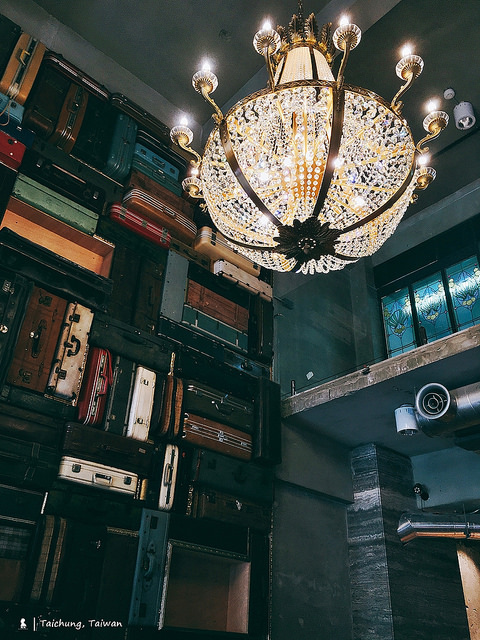 於是大廳有著一整面的老皮箱牆搭配華麗的水晶燈以及Art Deco 風格的電梯,在在像在訴說著舊時代的榮光,Check-in時肯定不會忽視用來作為接待桌的巨大金屬物,很有歷史感的這件是當年藍天飯店用來燒熱水的鍋爐,就這樣把故事延續了下來。