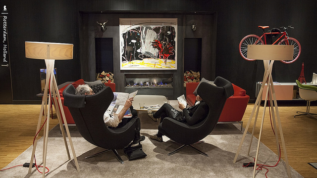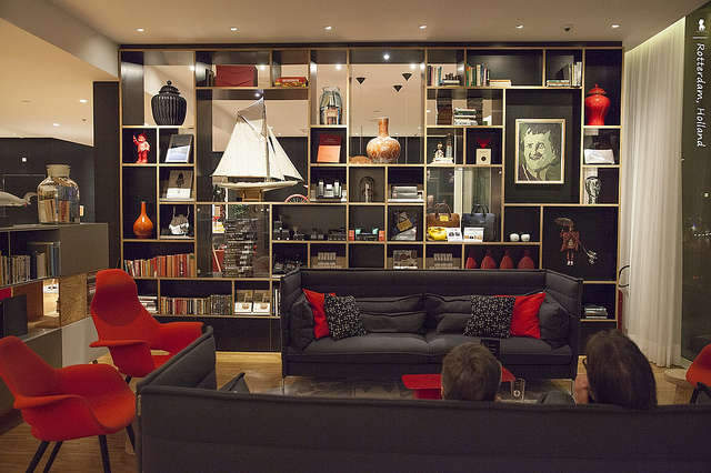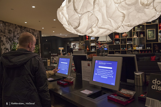 兼具著Hostel 洋溢的青春氣息與Hotel 的舒服便利,citizenM Rotterdam 是我目前住過最fun、最有意思的旅館。有別於一般飯店的入住手續,來到這沒有人親切招呼你check-in,你得自己使用位於二樓公共空間的幾台專用電腦辦理入住,想住哪一層樓還可自己選擇。抵達飯店時已蠻晚,到的時候就明顯感覺這旅館的公共空間氣氛很不一樣,人氣很旺。休憩區設計規劃的很有型,沒有距離感的像來到從事設計工作的老友家作客,雜誌一本、飲料一杯就能閒坐一陣。這吸引客人想來到公共空間活動的微樂感,讓我想到之前幾次入住Hostel青年旅館的美好感覺。