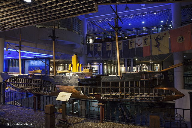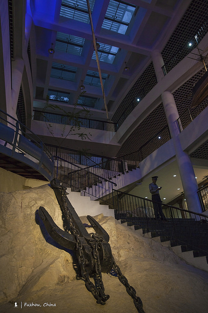 說到福州,就不能不提其在中國近代史中所扮演的重要角色。清朝在鴉片戰爭中吞了敗仗,1842年所簽訂的中、英南京條約中開放五口通商,福州就是通商口岸之一。因戰敗的體悟,1866年擔任閩浙總督的左宗棠上奏朝廷在福州成立船政局來製造船艦及火炮,後來是以馬尾港作為造船基地。若對這段歷史有興趣,推薦可到坐落馬尾的「船政文化博物館」參觀,裡頭關於中國船務發展有詳盡的介紹。此外,五層樓的博物館是依山而建,室內出現的大塊岩層裸石並非人工造景,而是建造博物館時所特意留下的自然山貌。