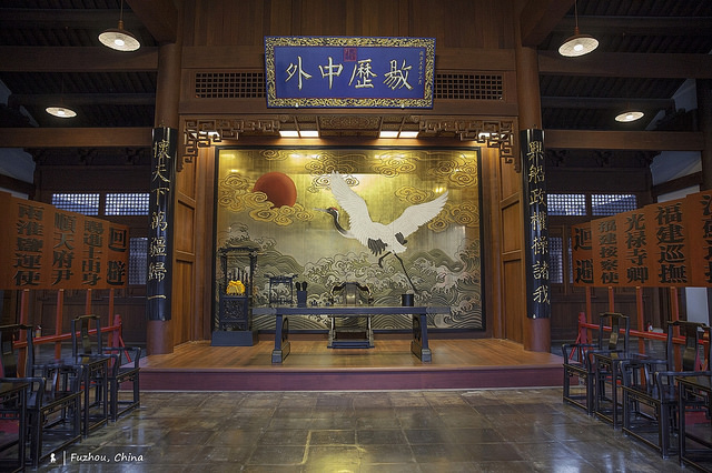 就在船政文化博物館附近,上個月(2016.10)才開放另一最新景點:船政格致園。跟馬尾造船廠相隔一條馬路,這裡是清朝的船政衙門,掌管處理船政相關事務。原建築其實早在上世紀就被日軍炸毀,導遊說是依照當初的設計圖進行復建,重現南方府衙的典範,讓參觀者得以遙想清末的衙門風光。