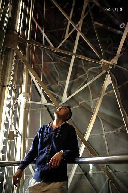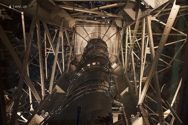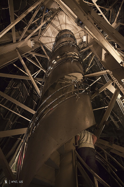146級的鐵梯也大有來頭,來自法國的這份超大禮,連鐵梯都是跟巴黎鐵塔一樣出自艾菲爾之手,此為這幾年旅行跟艾菲爾的第三次相遇,上回是2016年在祕魯白色之城阿雷基帕的一家餐廳「Zig Zag」,意外發現艾菲爾在南美留下的完美S型旋轉樓梯(請參考網誌),這次再遇到,驚艷的不是外型而是功能,因考量到自由女神像內部空間不大,因此特別設計成雙螺旋體,同時提供上下行,可避免黑羊白羊你退我讓的窘況,令人佩服!