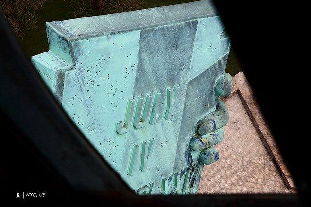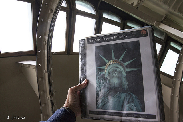在自由女神像體內活動時突然有種懷舊的兒時想像,彷彿自己就要跟操控無敵鐵金剛的柯國隆一樣,也能駕駛連同基座約30層樓高的自由女神了!登上皇冠後,從皇冠隔柵望出去,自由女神左手拿著那本刻上羅馬數字「JULY IV MDCCLXXVI」 (為美國獨立宣言通過日期的1776年7月4日)的書就在眼皮底下,再向右邊望去,是右手高舉的自由火炬,如此近距離的觀看相當不真實。