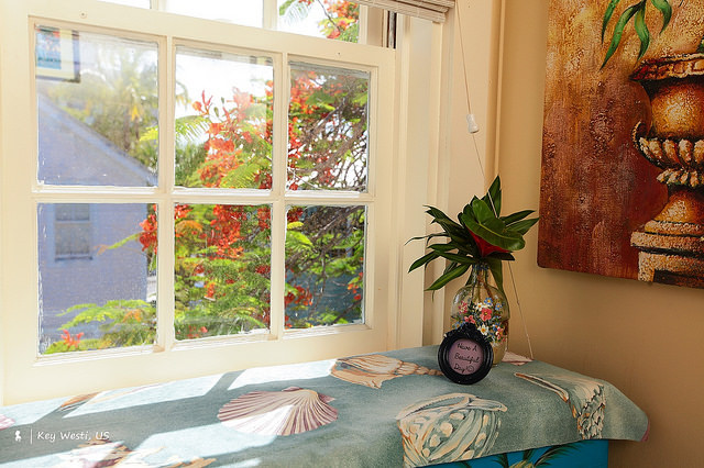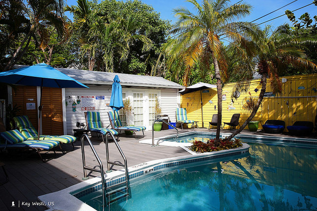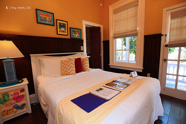 雖只住上一晚但旅館也是嚴選。入住的是老城區的 Marreros Guest Mansion 旅館,那是棟興建於1889年的老房子,裡頭還擺了架當時從英國倫敦搬來的老鋼琴,相當有味道。旅館每個房間的風格都不同,我們特別選了跟小鎮同名的 Key West 房,房間用色以鮮黃與咖啡搭配,溫馨又活潑,浴室窗外有棵正怒放紅色花朵的鳳凰木,灑下的陽光射了進來,十足的南方氣息!另外,擁有自己陽台,是我喜歡該房間的重要原因,看下去就是旅館泳池,那晚我在月亮與星光下躺在充氣墊上、泡在發著藍光的泳池裡,愜意至極! 若旅館有性別,這間 Marreros Guest Mansion 絕對是個女生,女性細心的特質在旅館顯露處處,優雅且體貼。