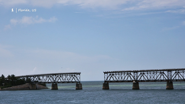 跟後來在其他州開在不見邊的荒漠相較,這段行駛在串連起近百座小島的跨海公路很賞心悅目,中間有處斷橋景點記得停一下,那是阿諾電影「真實謊言」裡的重要場景。這裡海的顏色很特別,調色猶如一塊薄荷加檸檬草的漂亮手工皂。