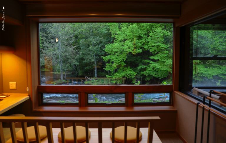 涼鮮綠,我用來形容北海道道東的夏天,這三個字的體驗正好也能在坐落阿寒川一家秘境旅館充分感受到。從低調的石材入口處玄關走入「LA VISTA 阿寒川」旅館,隨季換幕的大廳窗景,是給房客的見面禮。看到後,多數人的直覺反應會伸手找手機,更躁進者可能跟我一樣,等不及入住手續尚未辦妥,馬上跑去打開落地窗站在大面露台上一探究竟。流過的溪是阿寒湖支流、旅館以此為名的阿寒川,我在七月造訪,正是一片翠綠難擋,配上溪水淙淙,這舒心的景象很像 NHK 頻道的風景播放(看優惠房價)。