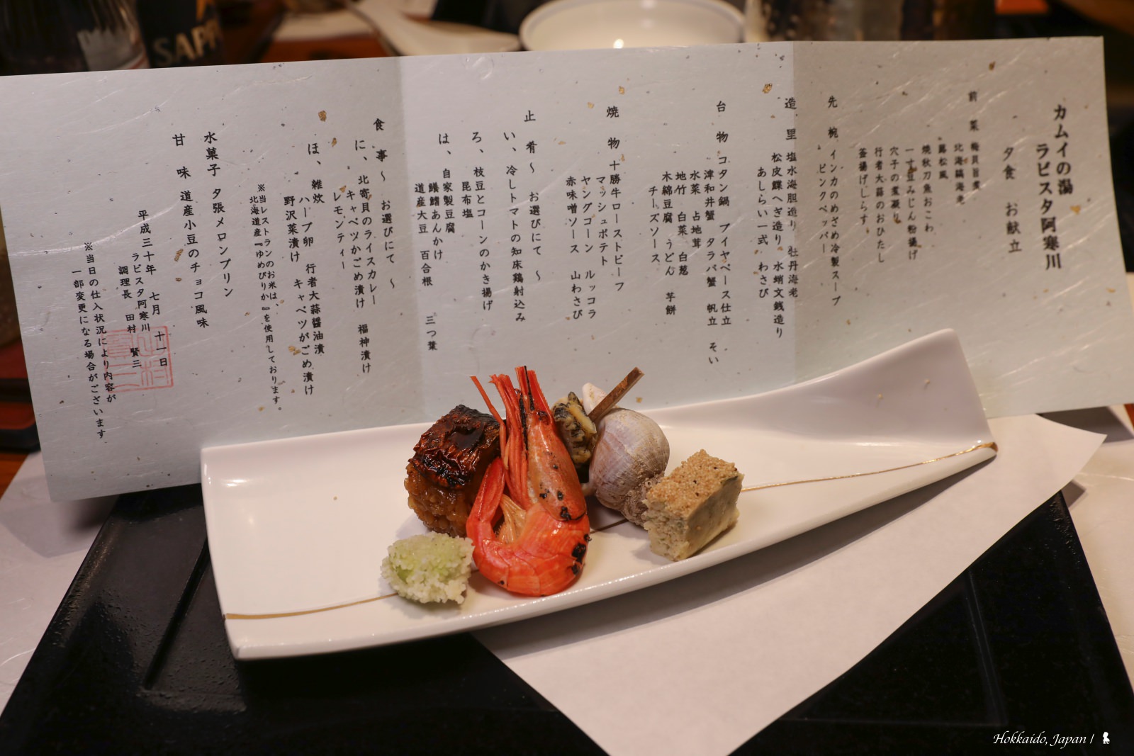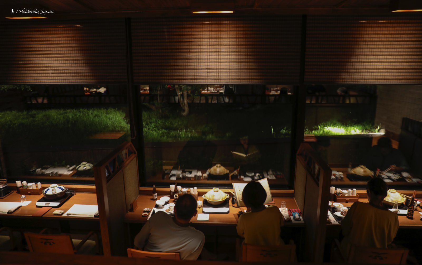 最後,鮮,當然是道東擁有最新鮮的海產,好幾位來過道東的朋友都說,吃完道東的生魚片後就回不去了!那的確是,這回在道東,我還首次嘗到非得相當新鮮才能端上桌的秋刀魚生魚片,那鮮味,道東限定。「LA VISTA 阿寒川」的晚餐,自然也能嚐到北海道的旬味,鮮蝦、海膽以及當令生魚片,還有美味的北寄貝咖哩,如折子的精美菜單一攤開,不折不扣是場大自然恩賜的饗宴。說到恩賜,溪旁的這間餐廳還有個動人故事。聽同行的北海道觀光大使溫士凱說,幾年前飯店還在興建時,曾救了一隻受傷的鹿,在那之後,每天傍晚一到,那頭鹿就會回到餐廳外的樹林吃草,遂被暱稱為報恩的鹿。下回若到這用餐不妨問問可否選坐窗邊,留意鹿蹤。