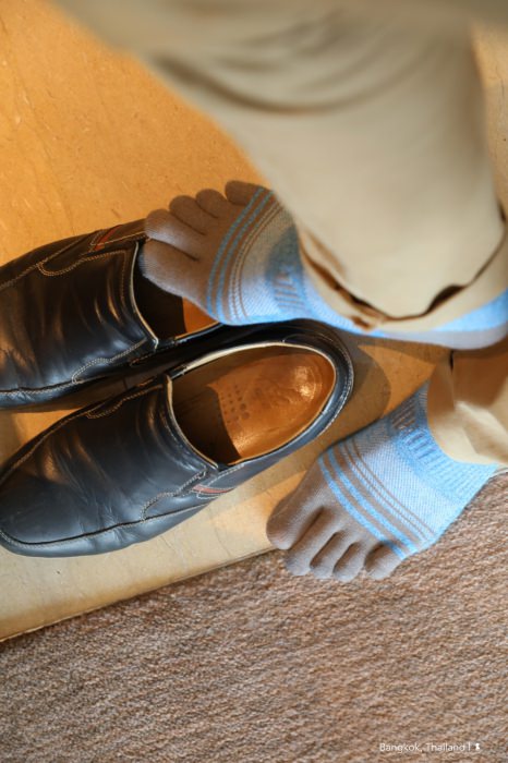 ⇑ 第一次穿五趾襪,沒有想像中會有卡卡的感覺,蠻舒服!(攝於曼谷大倉酒店)