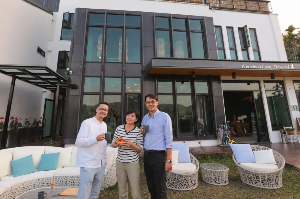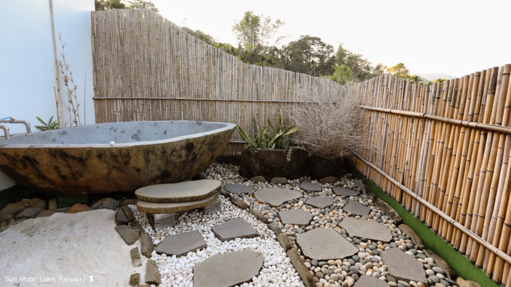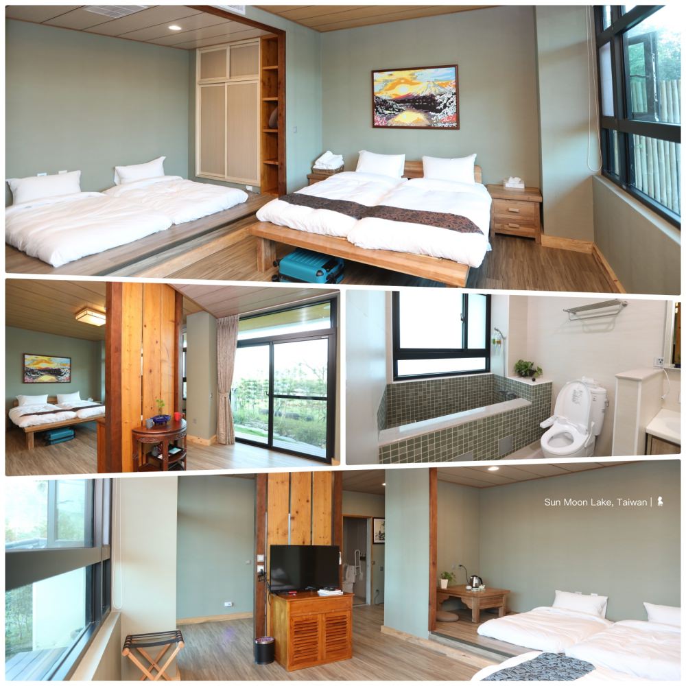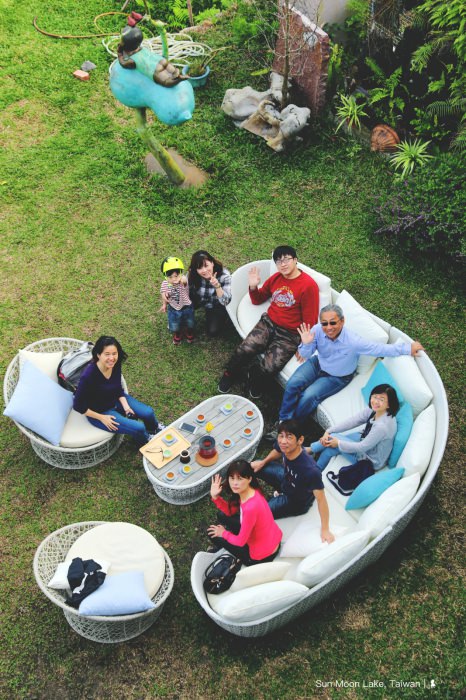 睽違四十年的家族旅遊,我負責找了間日月潭民宿來包棟,親戚們都很喜歡,特別是下午辦理入住後,大夥輪流參觀九個房間,驚呼聲此起彼落,一樓房間有小庭院,二樓的有樓中樓,三樓房間還有戶外浴池,其中一間還充滿中國宮廷風,戶外浴池的水龍頭真是「龍頭」造型來著,你一言我一語的開玩笑說,要當天住這間房的堂姐準備侍寢,可見前陣子宮鬥劇的進度大家都沒落掉。久違的家族聚會,考量到主要時間都會待在民宿敘舊,一定要嚴選才行。我挑的這間「散步的雲」日月潭生態民宿,來頭可不小,雖 2018 年 1 月才正式開幕,但已是全台首家建築碳足跡鑽石級認證民宿,更還剛獲得 2018 百大好客民宿「綠色樂活」組的冠軍,兩天一夜下來,果然沒漏氣的獲得宗親們好評。
