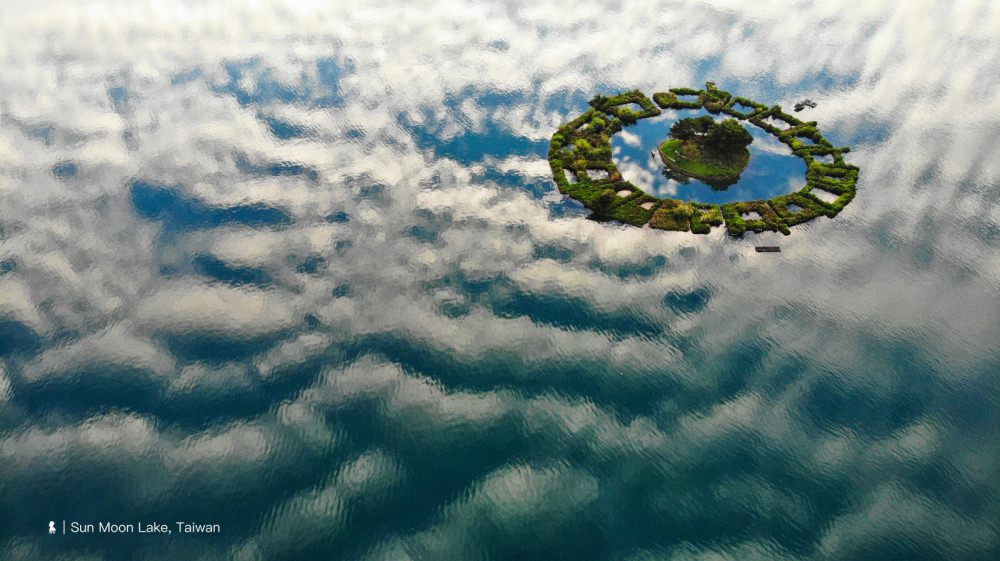 ⇑ 使用空拍機拍攝日月潭拉魯島,彷彿天空之城(要在日月潭使用空拍機,須於事前向日月潭國家風景區管理處申請→ 請點我)