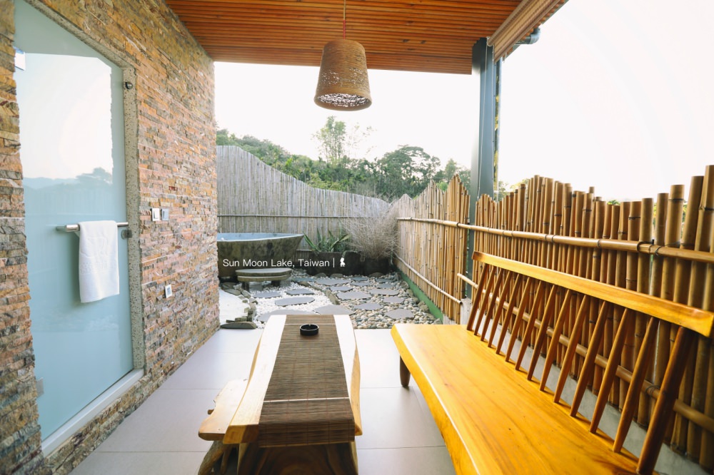 ⇑ V2 房有個半露天泡茶桌,房間有準備著名的日月潭紅玉台茶18號,在這泡來喝很是享受