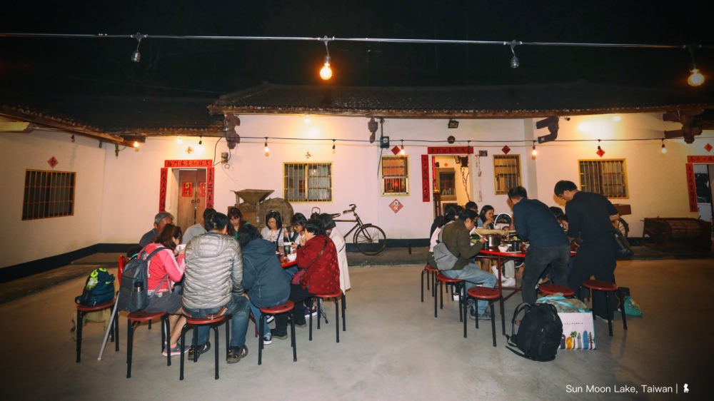當日晚餐,在民宿主人的推薦下,我們預定附近一處三合院老厝「阿爸食堂」用餐,與許久不見的親戚們一塊在充滿古味的露天廣場上吃飯,彷彿來到電視劇裡的花甲家,超親切!謝謝堂姐費心張羅晚餐,花了不少時間與餐廳來回討論菜單,用心程度可比國宴。席開兩桌,多難得的一聚!