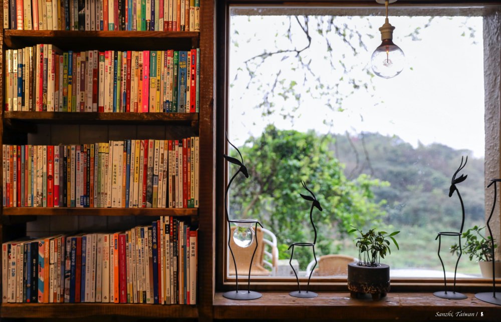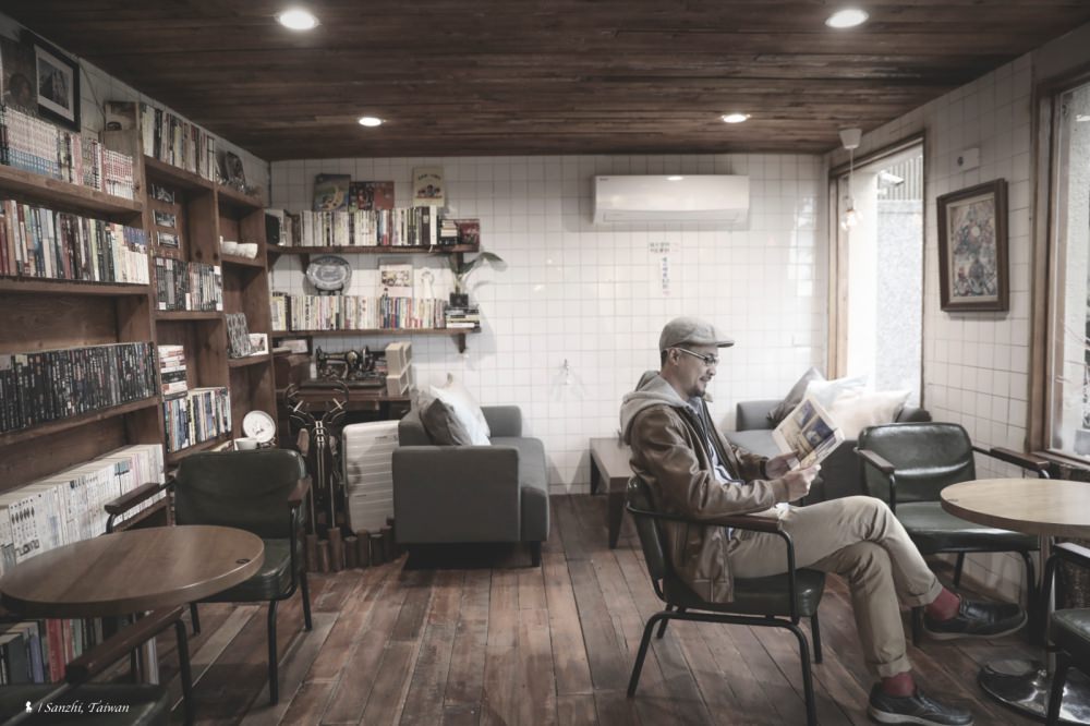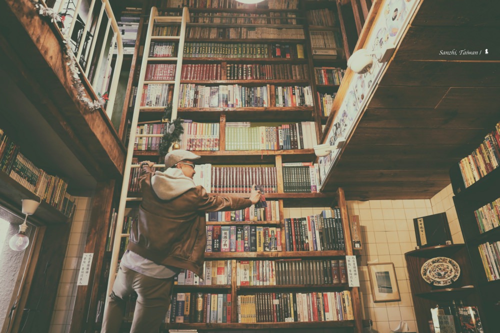 同樣位於芝柏社區裡,距離三芝洋房僅數步之遙,有間充滿書香的咖啡店。兩層樓的空間藏書無數,空間設計的很有特色,特別是有面高兩層樓的藏書櫃氣勢驚人,這裡,有資格入選全球最美 Top 25 的咖啡書店。過去曾擔任領隊的老闆與老闆娘,在店裡能發現他們過去走訪世界的足跡,許多角落都有故事。書中自有黃金屋,書本放下窗外還有遠近綠樹。台階、儲藏間、閣樓,全部變身為書蟲的小秘密基地,點杯飲料找個舒適的小角落,書本一開就是與自己對話的一方天地。或者,你也可以自己試試手沖,説不定咖啡師的養成之路,就從這裡開始。