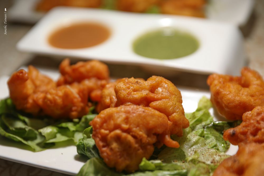炸蝦,提供芒果醬與薄荷醬,這道菜也獲得家人好評