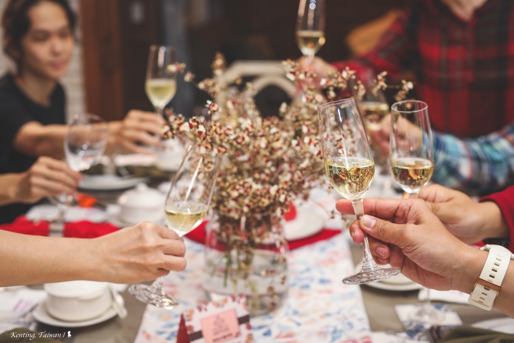 ⇑ 享用姊妹沙灘別墅準備的過年餐點,與家人舉杯歡慶圍爐