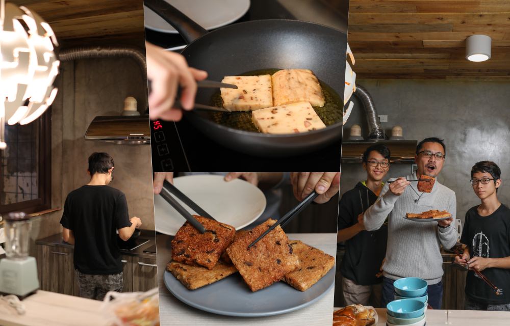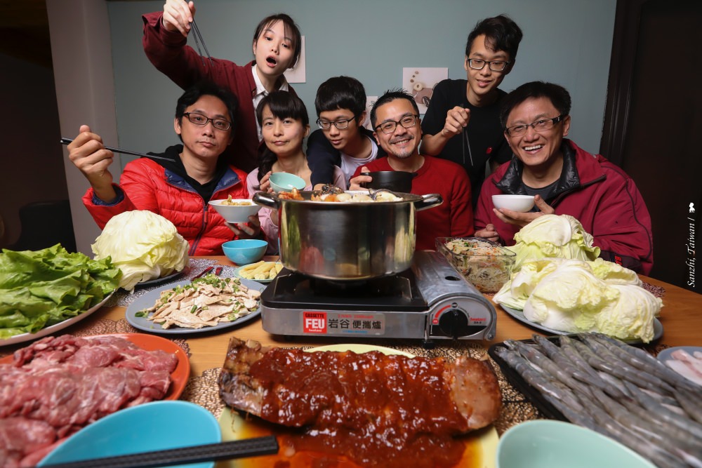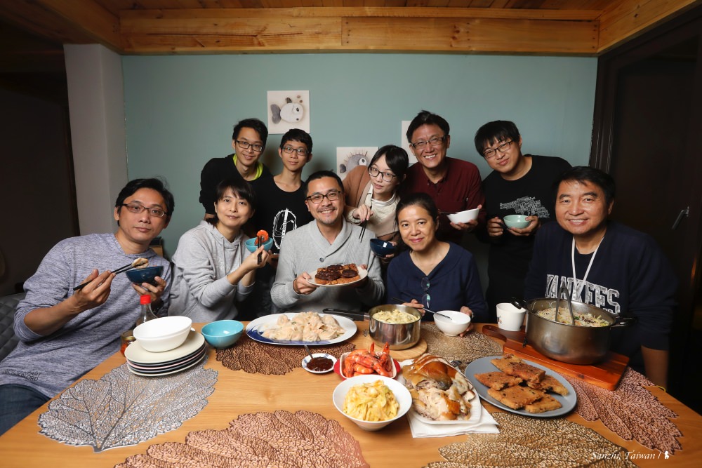 何其幸福,我們家就在這麼棒的地方度過小年夜與除夕圍爐!第一晚,邀請同住淡水的堂姐一家來小年夜團圓,堂姐熱情帶來包括自己做的炒米粉、黃金泡菜、醉蝦以及淡水很搶手的筍絲及燻雞!淡水里長哥我則準備單價不低但真材實料的頂級水餃來滿足一張張老饕的嘴。還有感謝客家好朋友饋贈的溫家手工年糕,有鹹甜粄和紅豆花生粄,由兩位侄子輪流下廚煎,讓大夥準備一起步步高升!這道地的手工客家年糕還是第一次吃到,口感非常紮實,獲得一致好評。