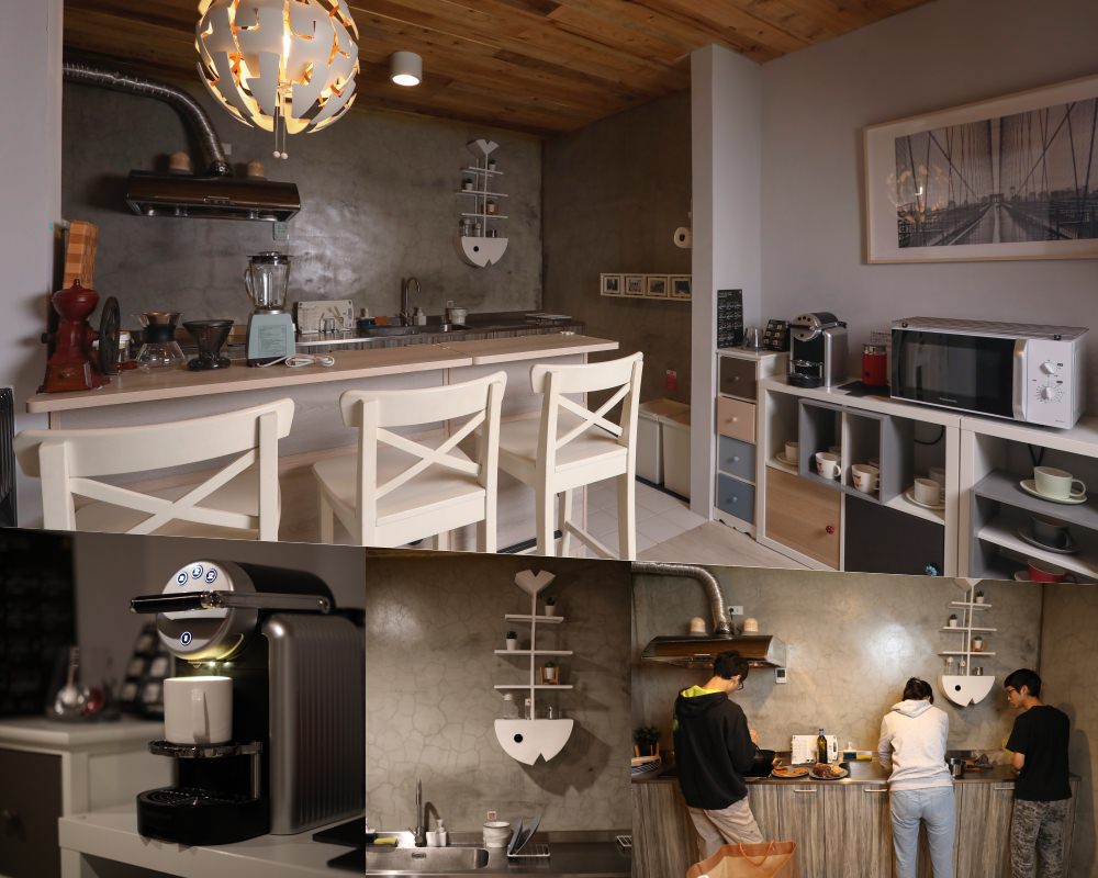 民宿主人的好品味,反映在室內設計與家具選用上,此外光是走進廚房,就可明白主人不只細心也大方!住過海內外不少飯店式公寓(Serviced Apartment)以及民宿,這裡提供的廚具、鍋碗瓢盆餐具等是最齊全的,就連一般都需房客自備的油品、調味料,都貼心的一應俱全,主人家完全是設身處地在做準備。提供的油品是來自義大利的《Olitalia》奧利塔玄米油,咖啡不是三合一,而是 Nespresso 義式膠囊咖啡機,旁邊還放一台好操作的專業奶泡機,當然,冰箱也已預先準備好一大瓶牛奶!我相信主人夫婦對生活品質肯定有一定要求,只是很難得的是,他們願意以同等標準慷慨款待來此作客的旅人。