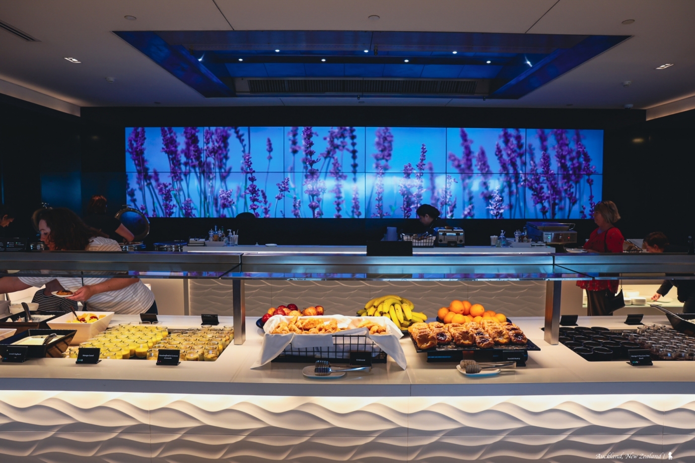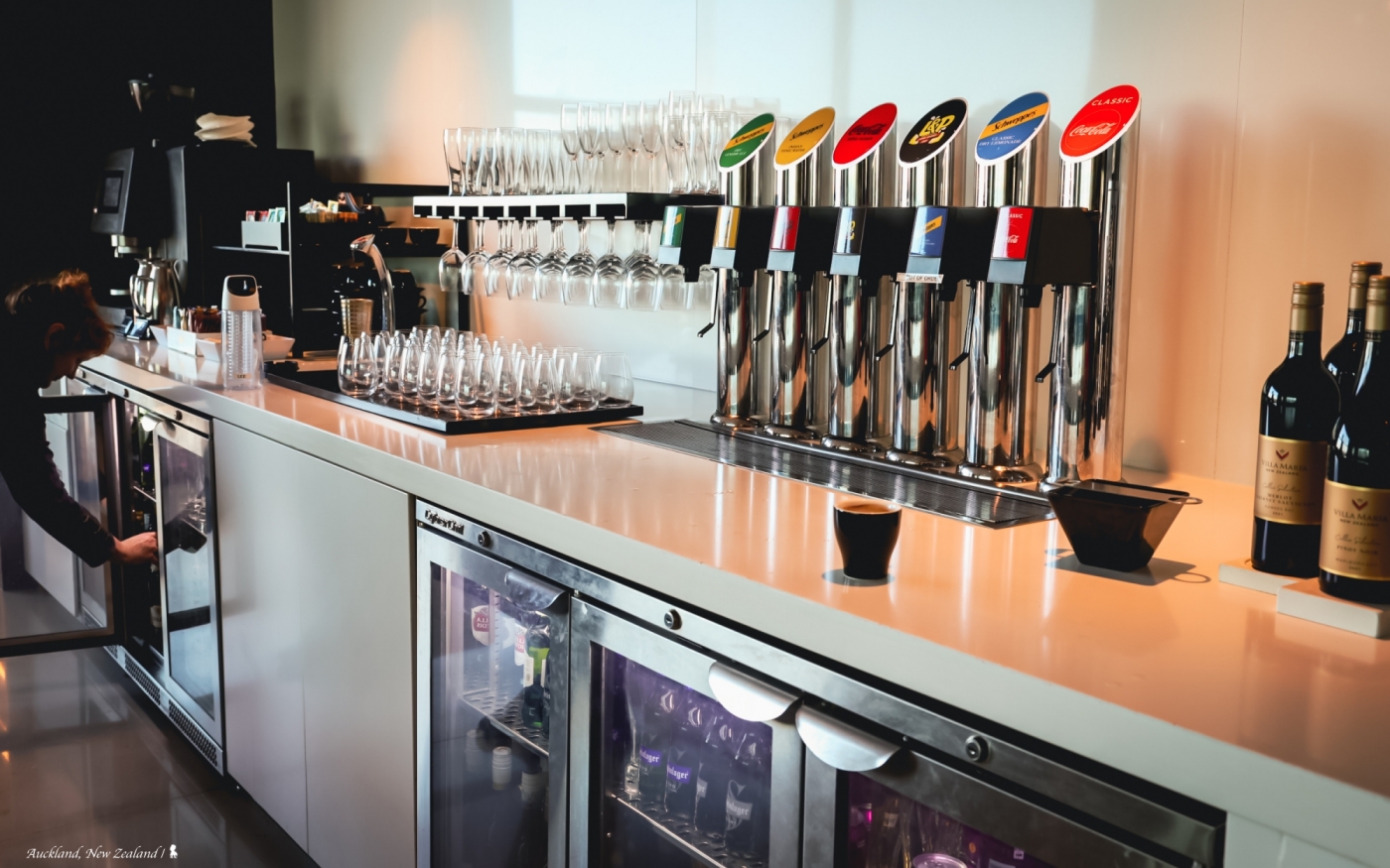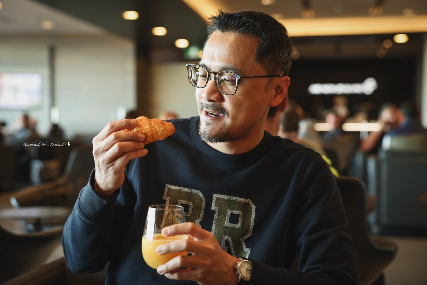 從奧克蘭返台的班機時間是早上 9:40,考量到得一大早就到機場報到,於是訂了前一晚在機場旁的 Novotel Auckland Airport(跟台北諾富特華航桃園機場飯店都是隸屬雅高集團),有夠近、只要過一個斑馬線就到航廈,是非常好的選擇,讓我能有更多時間在紐西蘭航空貴賓休息室好好體驗。紐西蘭航空在奧克蘭機場的貴賓休息室面積相當大,分為好幾個區塊,整體設計相當活潑也舒服。提供的餐點規模,大概是五星級飯店的 Happy Hour 等級,飲料選擇相當多,就連紐西蘭當地知名的檸檬 L&P 汽水也有,正好可趁離開前再喝一杯!