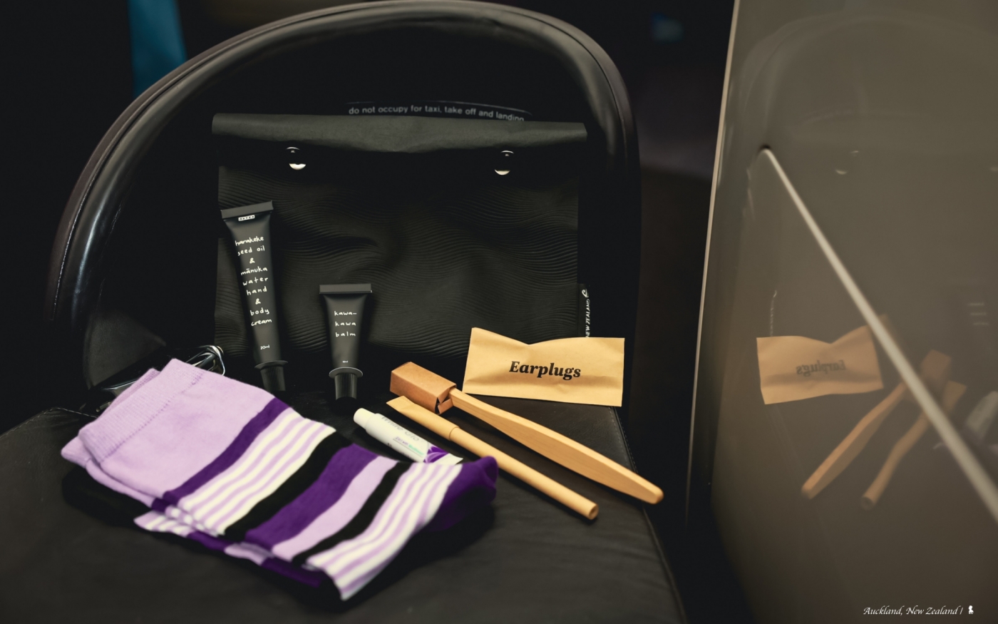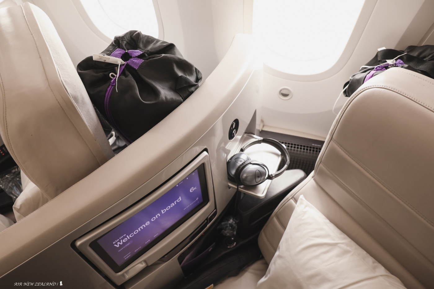 紐西蘭航空商務艙的座位採魚骨設計,我是首次搭乘,感覺相當新奇,特別是坐在我附近的其他多位乘客是彼此認識,頓時還頗有高空 Lounge 的感覺,有趣是每個座位前方有個腳墊,據說當初設計的初衷還真的就是要方便同行朋友彼此聊天。說到聊天,回程我幸運搭乘到有免費提供 WiFi 的班機,這下還真的是能在高空上透過網路跟朋友聊天與即時發文。