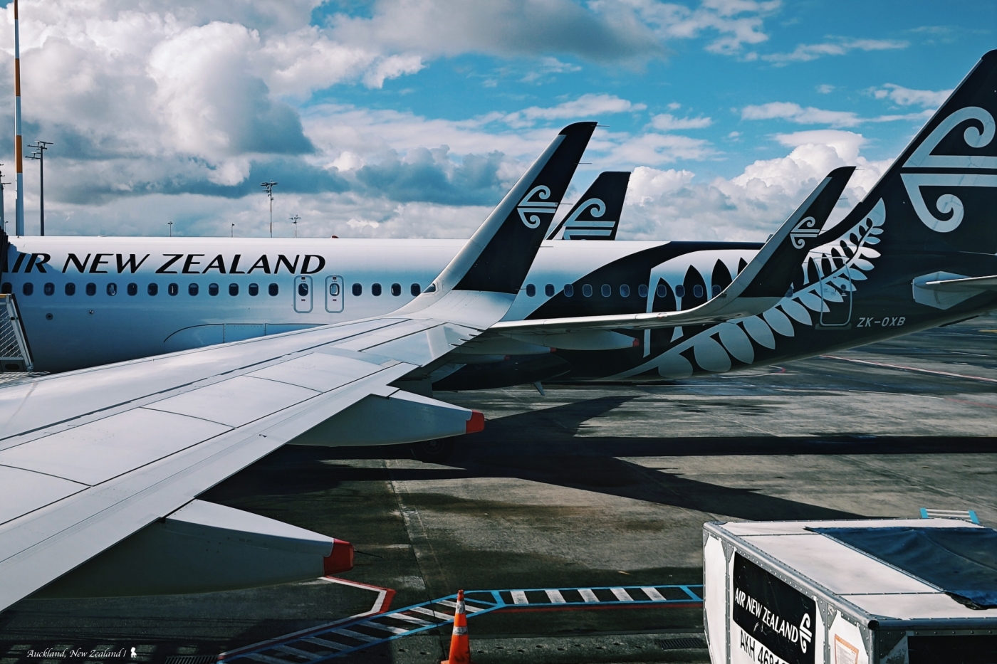 ⇑ 降落奧克蘭時看到窗外這幅有趣畫面,像是「眼力大考驗」,彷彿在問:請於 1 秒內正確說出照片裡有幾個紐西蘭航空 Logo