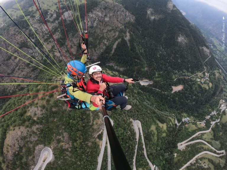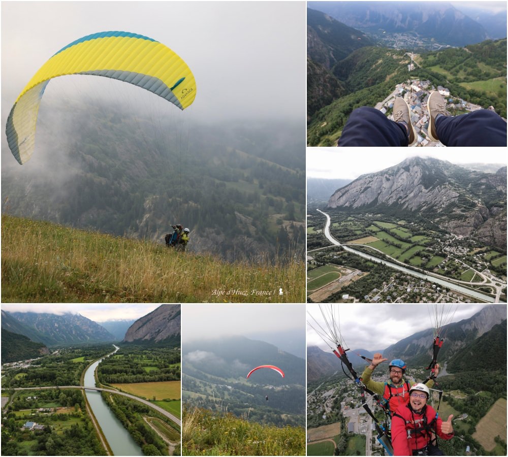 阿爾卑斯山上的一夜好眠後,這早,多謝老天給了好天氣,讓我迎來海外首次的飛行傘體驗!之前曾在宜蘭玩過但只有短短 5 分鐘,但這回在空中的時間長達近 20 分鐘之久,且還是翱翔在優美的阿爾卑斯山谷,實在過癮!除了向懸崖直奔而去的助跑起飛讓我略感緊張外,接下來在教練專業的操控下都讓整個過程相當放心與享受。不禁想著,再過幾個月,腳下的蒼翠將被雪覆蓋白成一片,又是另一個世界,期待有天在 21 個髮夾彎的歡迎儀式後,我將再回到白色仙境版的阿爾卑斯 • 杜艾,勢將會是截然不同的感動!
