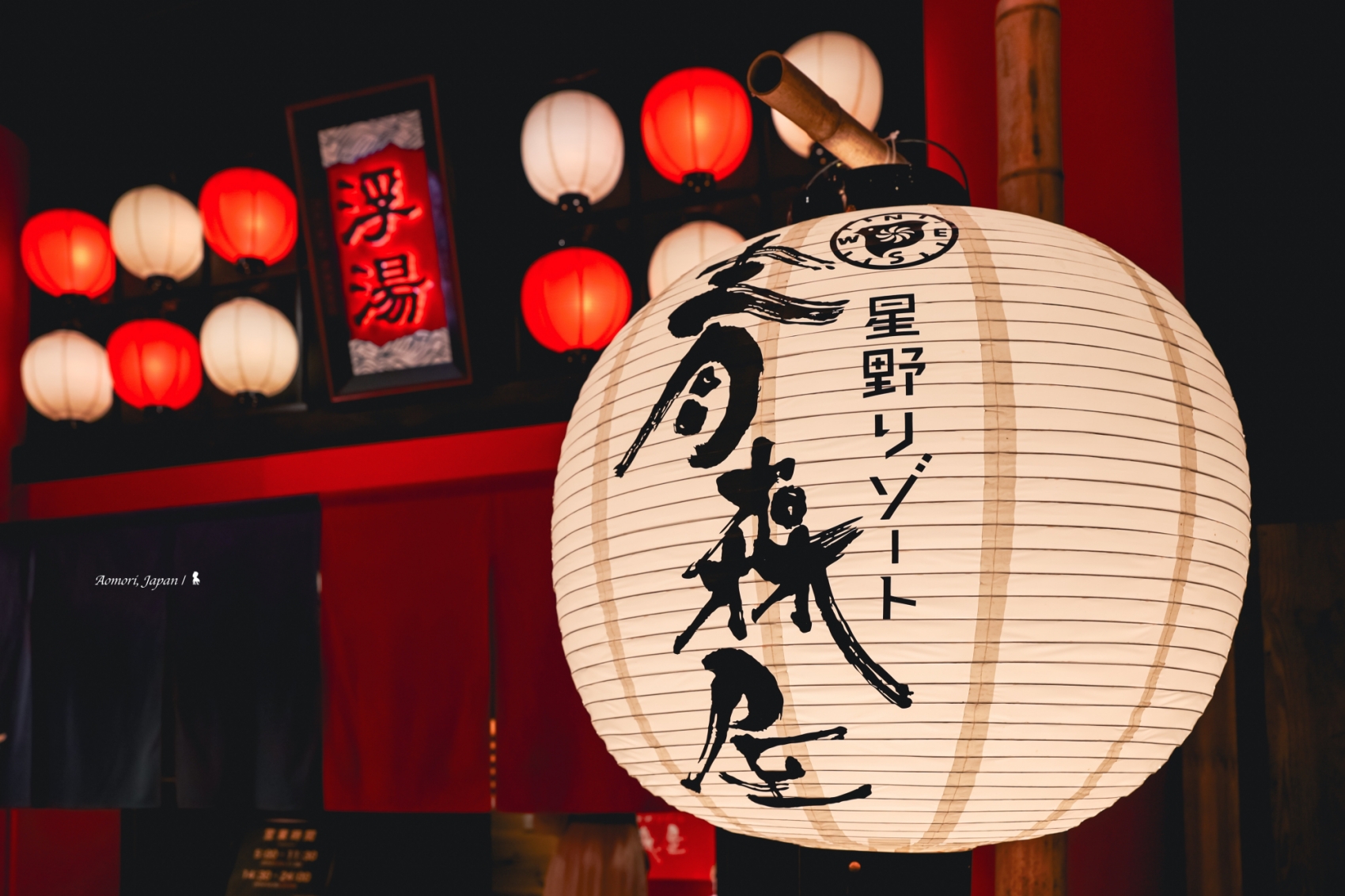 來青森屋,泡湯不是選項,絕對是我的行程主軸!館內的「浮湯」是人氣之最,我在春末時節造訪,露天池面漂浮著粉嫩櫻花造景,夜裡點亮粉櫻燈球,浪漫得像走進和風童話。白天泡,看綠影水光;夜晚泡,看月色燈火,各有風情。