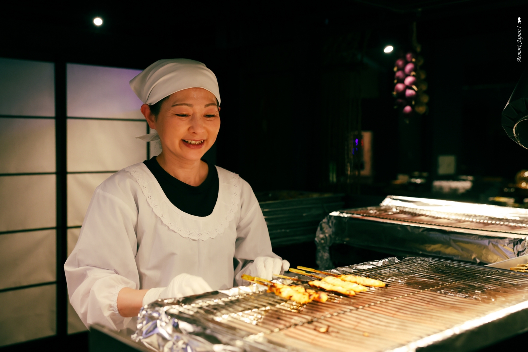 ⇑ 料理區的靈魂人物—青森媽媽現場烤串,不只是美味,更是一份家常的溫度
