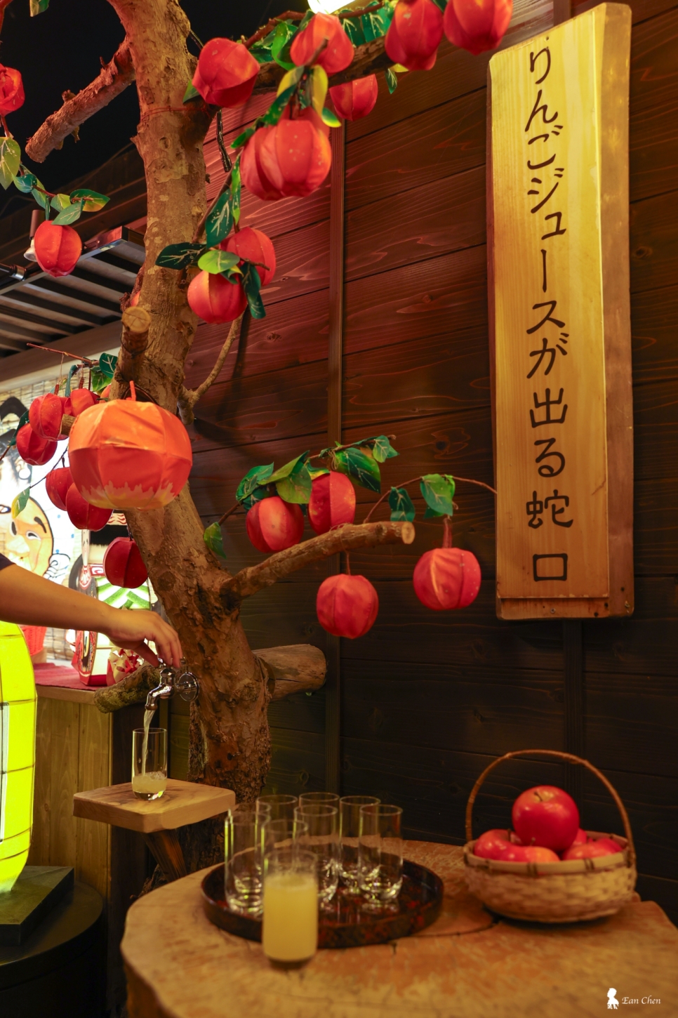 ⇑ 大人小孩都愛的青森屋招牌體驗,轉開「蘋果樹」上的水龍頭,青森蘋果汁立刻流淌而出,為旅程揭開酸甜序曲