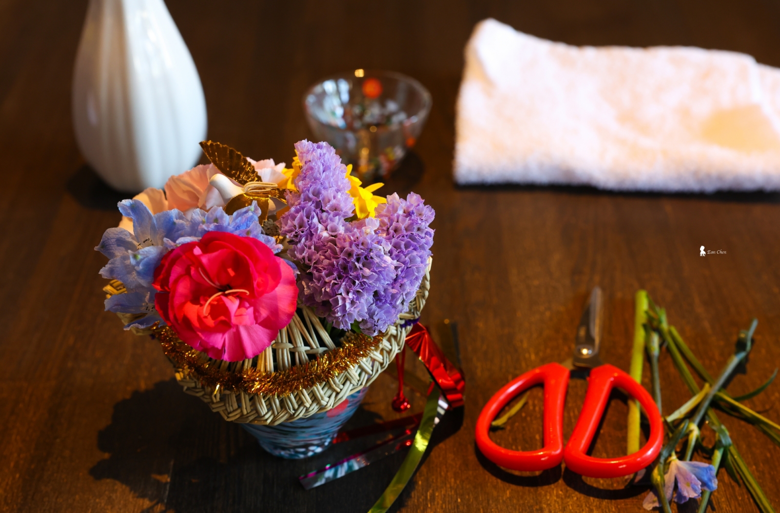 ⇑ 剛完成的小花笠,彷彿盛開在桌上的春日花園