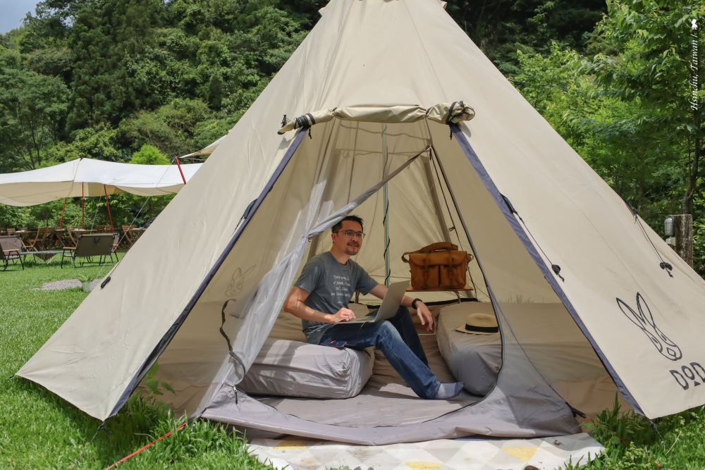 ⇑ 第一趟帶白金漢包的旅行,是來到飛鳥恰恰來野奢露營