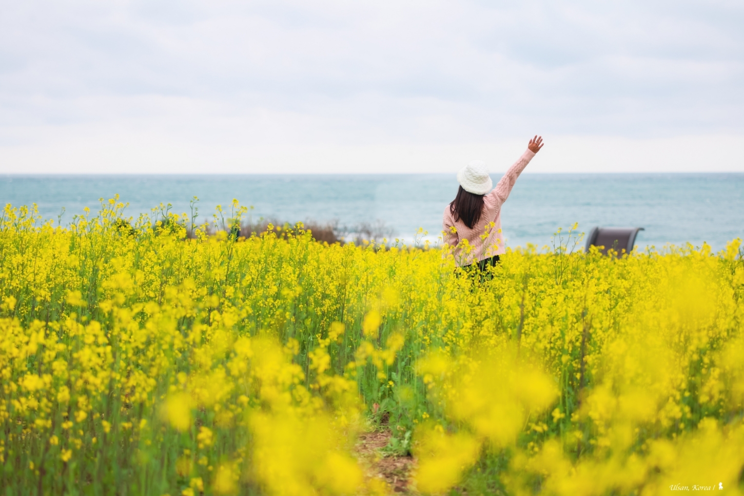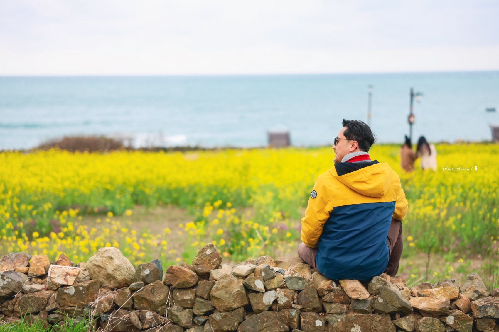 若在台灣長大,對油菜花可能不會感到太新鮮,但我在蔚山的瑟島看到以大海為背景的油菜花田,可真讓我驚艷了,特別讓我喜歡的是這裡像個秘境,仍保純樸沒過多的人工裝飾,尤其是石頭堆砌的矮牆配上黃澄澄的油菜花,遠方還濺起了浪花,那真是一場視聽覺的自然饗宴。