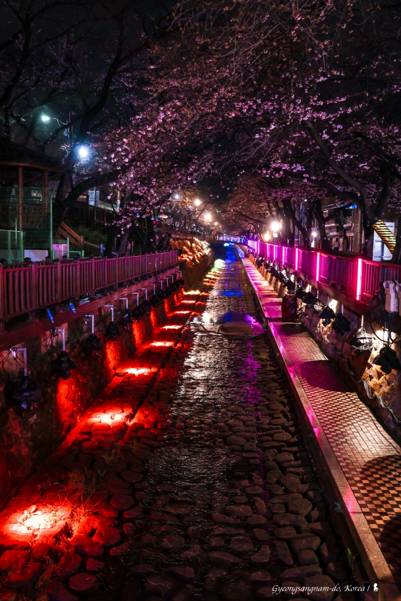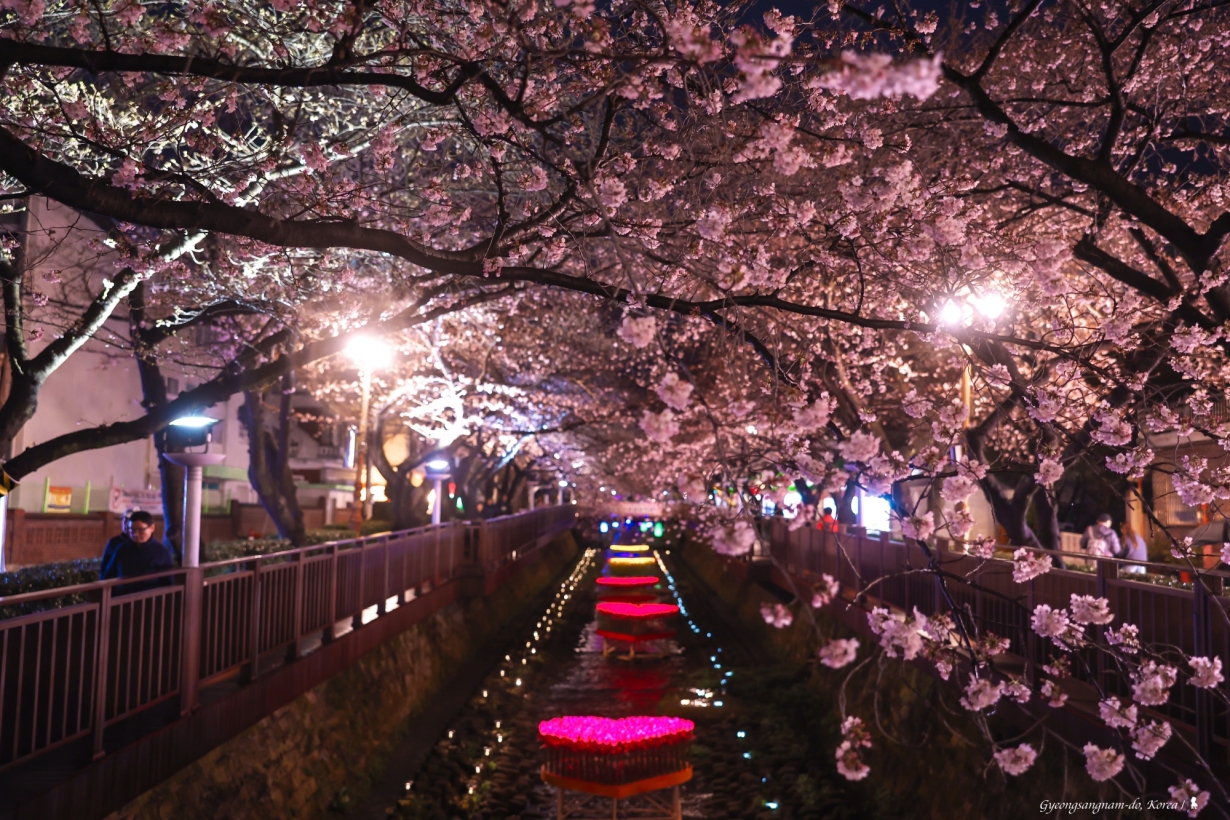 因 MBC 電視劇「羅曼史」拍攝,被同名暱稱的羅曼史橋,到了櫻花綻放的春天,讓余佐川又更加浪漫了!特別是到了晚上,在照明加上燈飾的烘托下,一段一段都有不同主題,讓我看見韓國夜櫻也是別有風情。