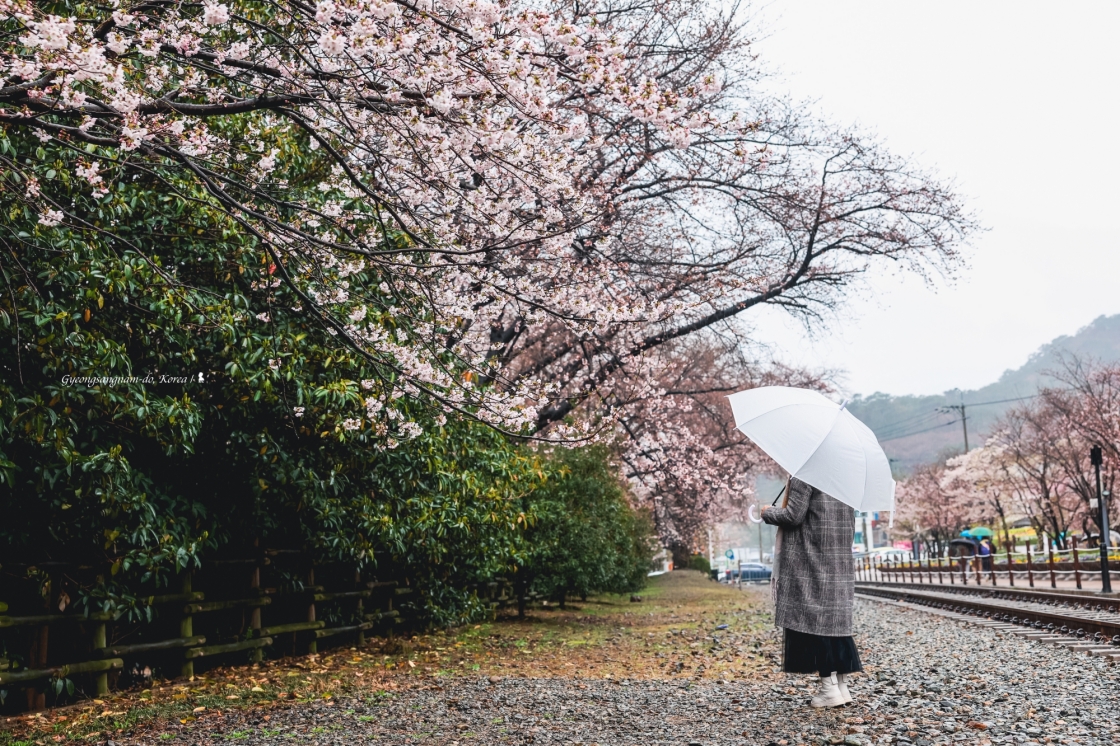 已停止載客的鎮海慶和車站,每到春天就會活了過來,因為鐵道兩旁盛開的櫻花樹加上鐵道,加上現場還放了曾運行過的列車,成了最佳美拍聖地。造訪時天公不作美,倒也讓狼狽一路撐傘的我感受沒有落英繽紛的正港櫻花雨,但確實可以想像等到滿開放晴之時,這段路會有多美,就留些遺憾下次再訪。