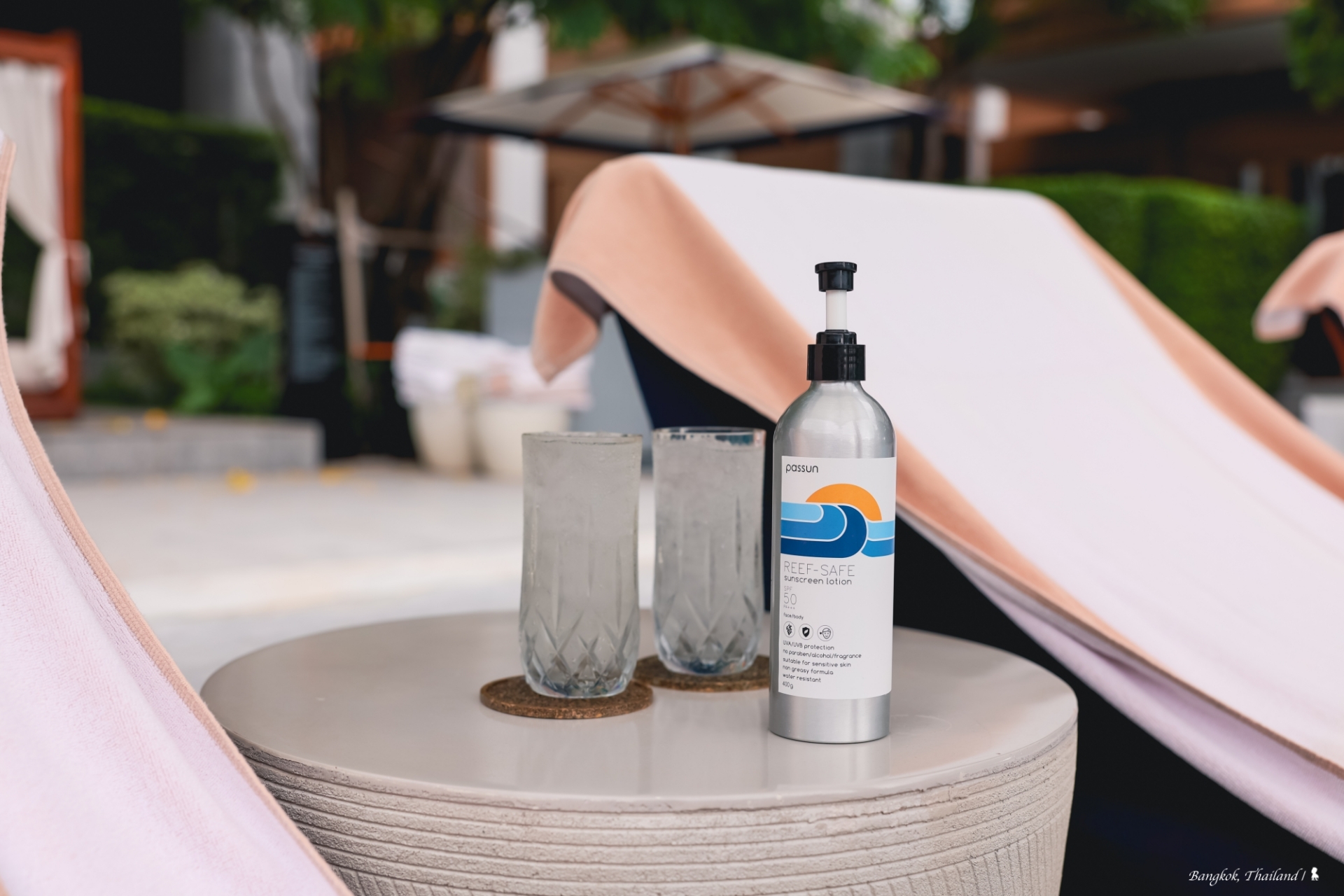 ⇑ 使用飯店泳池,服務人員會來所在躺椅鋪毛巾,冰水常見但提供防曬乳還是首次看到,非常細膩的服務