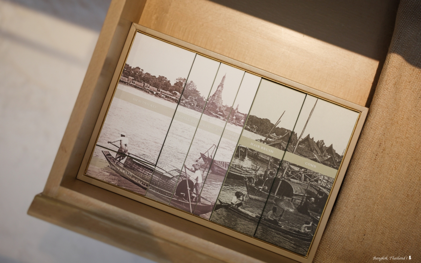 ⇑ 浴室的備品組使用曼谷老照片製作成拼圖效果