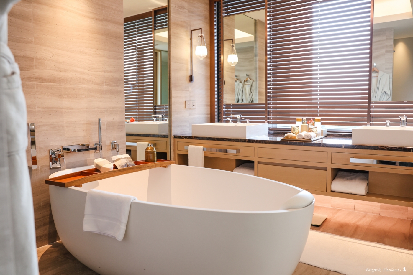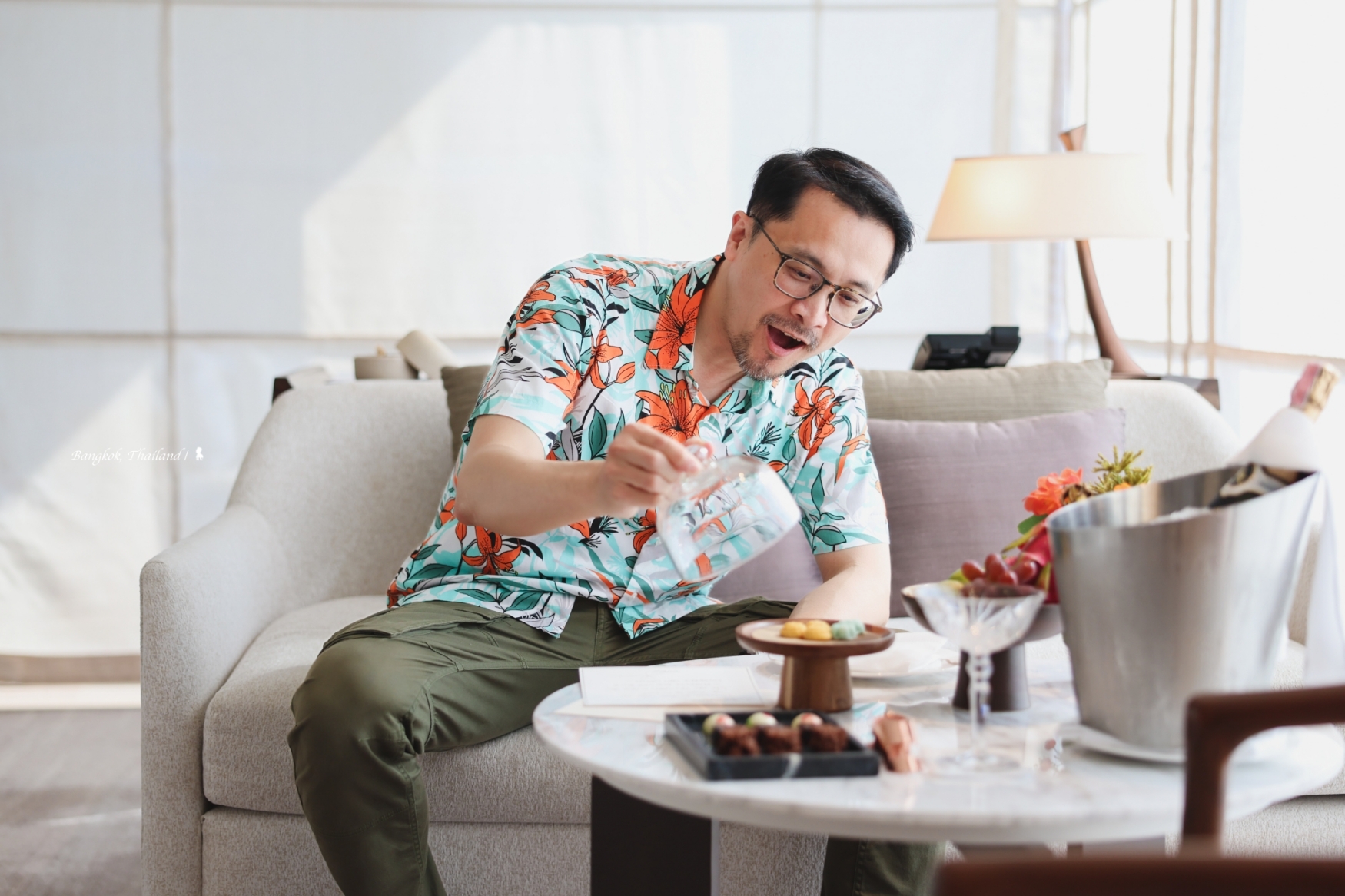曼谷嘉佩樂酒店由 Hamiltons International 的兩位建築設計師 Andy Miller 和 Richard Scott Wilson 聯袂設計,室內設計則是邀請到擅長打造奢華空間的舊金山 BAMO 設計事務所操刀。建築大器俐落,想知道最佳視角?那請跳上飯店貼心提供來回 IconSiam 購物中心的免費接駁船,不僅可避開塞車之苦,住客更能從河面上欣賞到完整的飯店外觀。擁有建築師執照,目前在東京 Ilya corporation 任職、曾負責多家渡假飯店設計案的李欣,為我介紹眼前這種無過多裝飾、簡潔幾何造型的建築形式被稱為是「International Style」,國際風格乃起源於 1920-1930 年代,為現代主義的主要形式之一,她分享曼谷嘉佩樂酒店簡單的說就是 International Style 結合昭披耶河的河岸文化,其細心觀察到飯店將悠久的曼谷文化元素與傳統技藝都適切的融入在家具和藝術品中。這讓我想到 Kerry Hill 設計的涵碧樓,使用簡單線條造就了住客眼中不凡的日月潭景緻,曼谷嘉佩樂也是,設計師讓房間窗戶如畫框,只要躺在床上就能看見最美河景。「一打開房門,就能看到大面落地窗外的河景,感受到來往船隻所帶來的城市生命力」無價的客房窗景,讓李欣留下深刻印象。