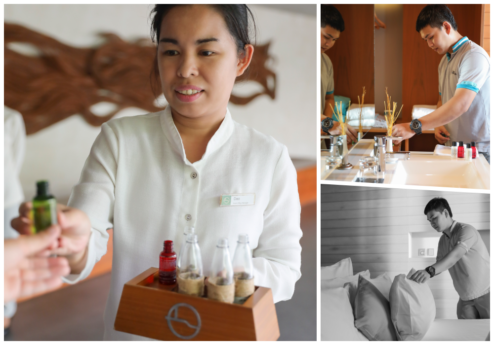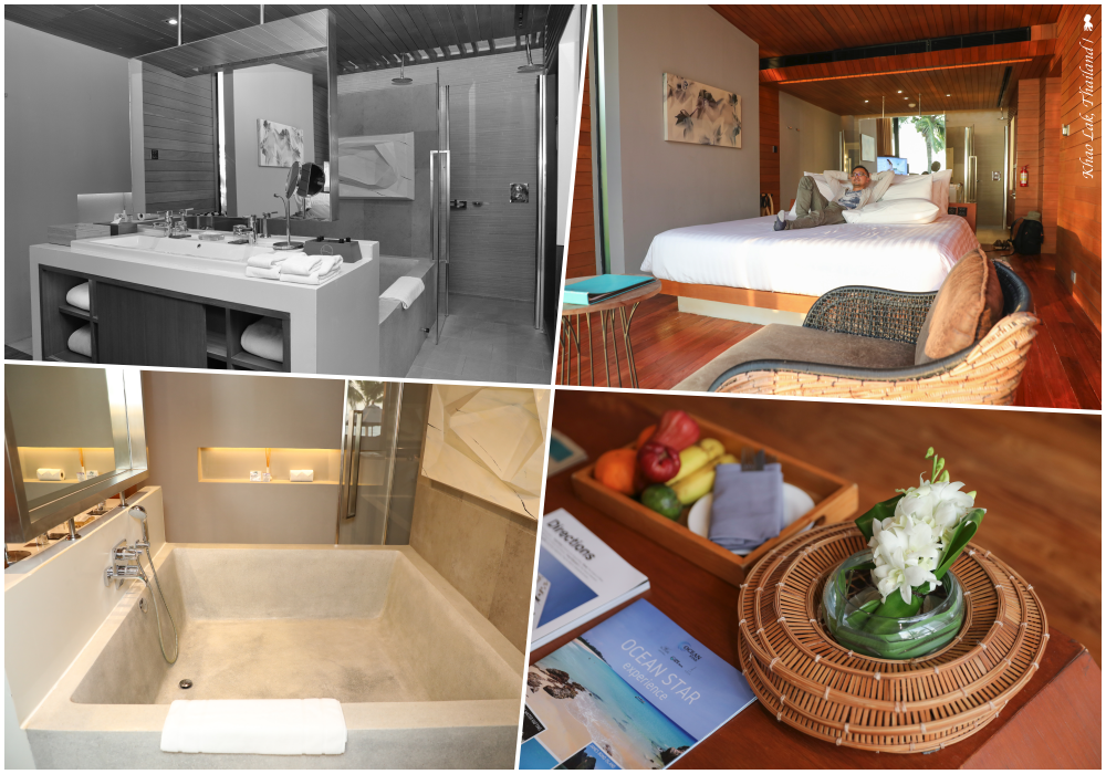 呼應度假村名字 flora 是代表花的意思,36 間 villa 也都各自以花來命名。我入住的是面海灘泳池別墅 (Beachfront Pool Villa),既然是度假飯店,奢侈的把房間一半空間留給浴室也是合理,其中有座可同時擠上三人的浴池,放水需超過半小時,但我沒試,因我更愛打開落地窗就能直接跳入泡水的私人泳池。除了睡前泡,更要把握的是落日時分,因度假村房間統一面西,泡在池子裡就能欣賞夕陽,一邊聽帶來的藍芽喇叭流瀉的音樂,一邊欣賞海景晚霞,實為至樂!