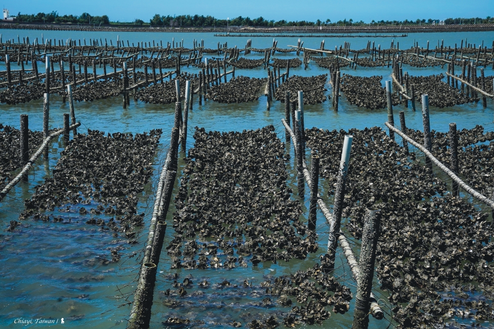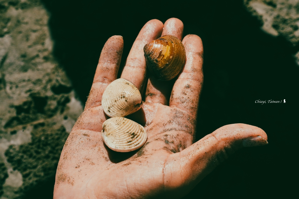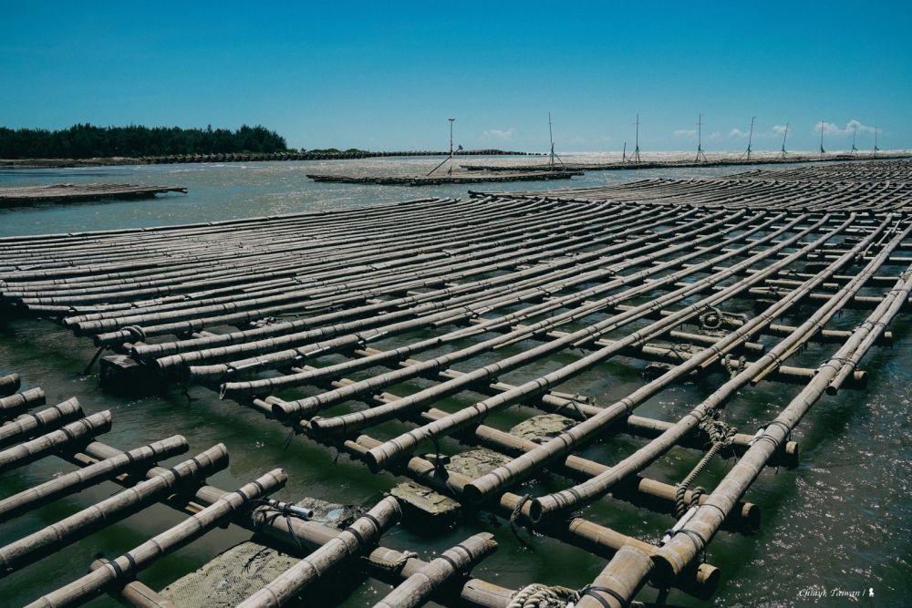 烈日下跳上「布袋海上巴士」,海上蚵架是最獨特的航行風景,拿麥克風的船長老大介紹兩旁有平台式與浮棚式兩種蚵架,載浮載沉的就是代表已可收成,放送的養蚵小百科聽了其實很快會忘,但不會忘記回程船上牛奶蚵的濃濃海味。準備靠岸,船長鼓勵大家把鞋子脫掉,赤足感受沙子的鬆軟有彈性,想到 20 年前,我應該也是沒穿鞋子踩在那片沙灘上吧,索性從善如流。